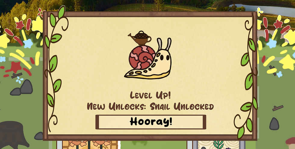 The level system is the foundation of our idle game's player progression. Experience points that are required for leveling up are gained by harvesting flowers. Leveling up gives the player access to new flowers and tools to further advance their garden.