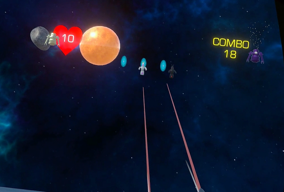 I added an additional interaction of asteroids in the environment that explode on impact using unity physics and picking up blender's slice tool.